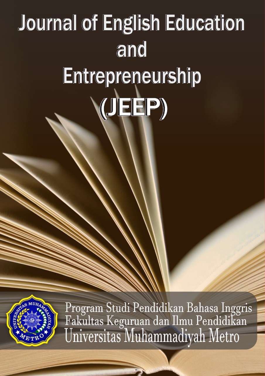 Vol. 5 No. 1 (2025)Journal of English Education and Entrepreneurship (JEEP) is a scientific journal published twice a year in December and June with the number of 5-10 articles per year. JEEP publishes articles as the results of research and scientific work either empirical or conceptual. This journal focuses on both research and conceptual articles done by any English teacher or lecturer within Indonesia or overseas countries. It allows any writer to submit up to 10-15 pages or equivalent with 3000 to 5000 words in range. It applies APA style in all articles submitted to this journal. More than 5000 to 7000 words are preferable. While the scopes include English Language Teaching (ELT) in EFL or ESL context, English applied linguistics (EAL) in any forms: empirical or conceptual.